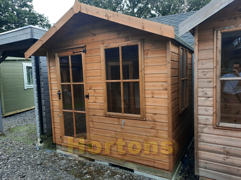 The Chalet Summerhouse is an excellent place to enjoy your garden on those long summer days and is offered in a range of sizes. Quality features include a 6 pane georgian door with black antique hinges, ornate handle and lever lock. 4 pane georgian fixed windows to the front and sides are all included as standard.