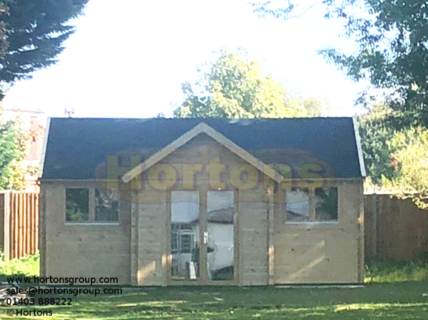 We make all Hortons log cabins from slow grown spruce timber. Double glazed windows and doors are standard for all Hortons Log Cabins of wall thickness 35mm and above. 28mm Log cabins come with single glazing as standard ( Upgrade is available). We fit your glass for free before delivery, unlike some of our competitors. Hortons cabin doors come with special security hinges which are also adjustable. It is not possible to unscrew our log cabin doors from their frame to gain access - we use special security hinges which are also fully adjustable. We can add extra doors and windows to any Hortons Log Cabin, call us for details & quotes. Minimum purlin size for Hortons log cabins is 70x140mm and no greater than 600mm apart for a very strong roof