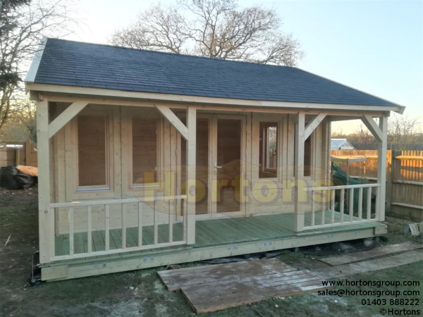 We make all Hortons log cabins from slow grown spruce timber. Double glazed windows and doors are standard for all Hortons Log Cabins of wall thickness 35mm and above. 28mm Log cabins come with single glazing as standard ( Upgrade is available). We fit your glass for free before delivery, unlike some of our competitors. Hortons cabin doors come with special security hinges which are also adjustable. It is not possible to unscrew our log cabin doors from their frame to gain access - we use special security hinges which are also fully adjustable. We can add extra doors and windows to any Hortons Log Cabin, call us for details & quotes. Minimum purlin size for Hortons log cabins is 70x140mm and no greater than 600mm apart for a very strong roof
