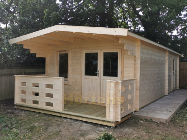 We make all Hortons log cabins from slow grown spruce timber. Double glazed windows and doors are standard for all Hortons Log Cabins of wall thickness 35mm and above. 28mm Log cabins come with single glazing as standard ( Upgrade is available). We fit your glass for free before delivery, unlike some of our competitors. Hortons cabin doors come with special security hinges which are also adjustable. It is not possible to unscrew our log cabin doors from their frame to gain access - we use special security hinges which are also fully adjustable. We can add extra doors and windows to any Hortons Log Cabin, call us for details & quotes. Minimum purlin size for Hortons log cabins is 70x140mm and no greater than 600mm apart for a very strong roof